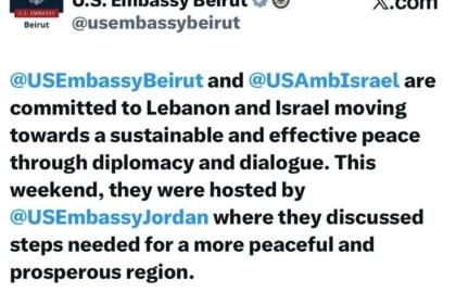 قالت السفارتان الاميركية في بيروت وتل ابيب انهما تلتزمان بدعم انتقال لبنان وإسرائيل نحو سلام مستدام وفعّال من خلال الدبلوماسية والحوار. وفي نهاية هذا الأسبوع، استضافتهما السفارة الأميركية في الأردن، ح...