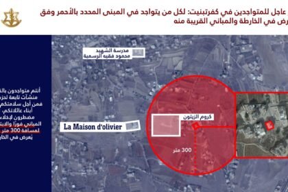 انذر المتحدث باسم الجيش الاسرائيلي افيخاي ادرعي اهالي بلدتي كفرتبنيت وعين قانا قضاء النبطية جنوب لبنان باخلاء منزلين ، واعلن انه سيتم مهاجمتهما قريبا.. هذا الانذار هو الاول في شهر شباط وبعد حوالي اسبو...