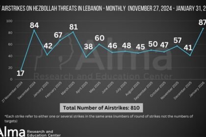 نشر مركز “ألما” للبحوث والدراسات “الإسرائيلي”، تقريراً عسكرياً، يتمحور حول التصعيد الميداني على لبنان لشهر كانون الثاني 2026 ويشير المركز الى زيادة كبيرة في عدد ضربات الجيش الإ...